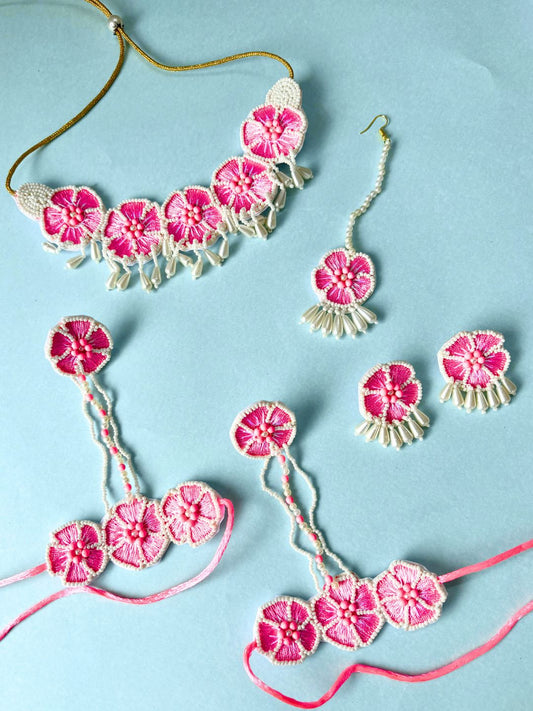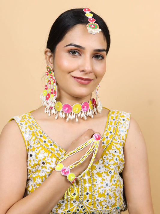 Rang Floral Bridal Jewellery Set (Pink and Yellow)