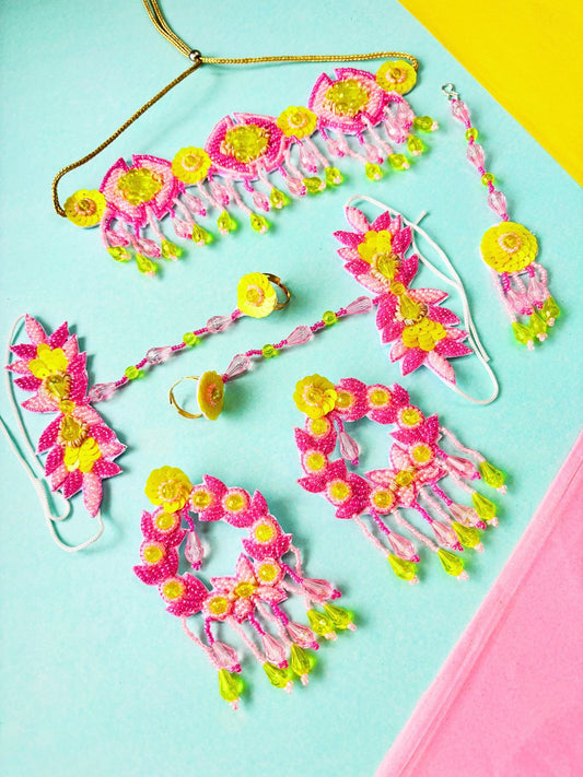 Rang Floral Bridal Jewellery Set (Pink and Yellow)