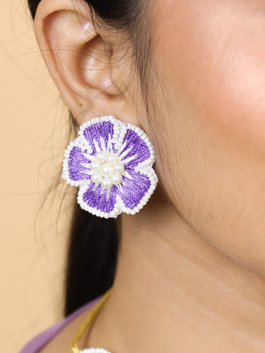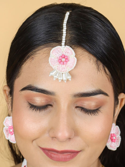 Flower Blossom Bridal Maangtika Earrings Set (Pink and Blue)