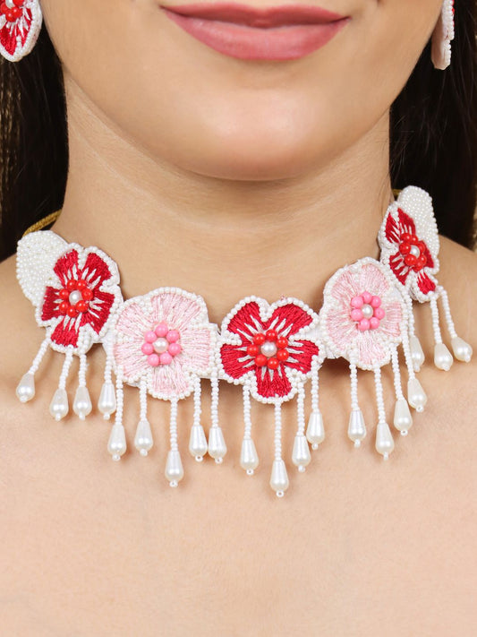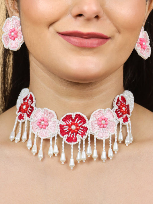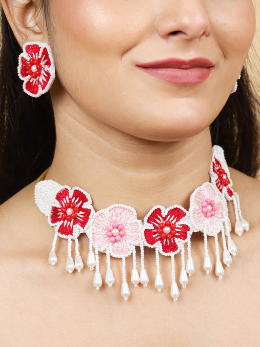 -75% OFFFlower Blossom Choker Set (Red Pink)