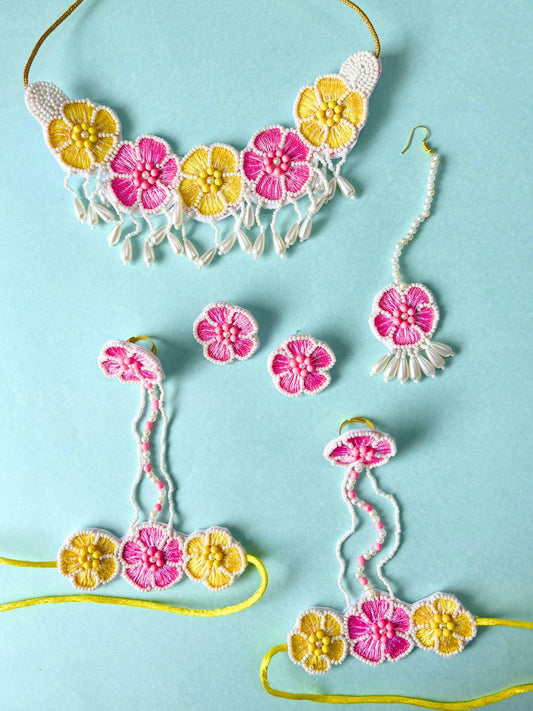 Flower Blossom Bridal Jewellery Set (Pink and Yellow)