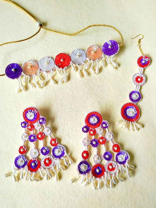 Sequina Necklace Bridal Jewellery Set (Pink and Blue)