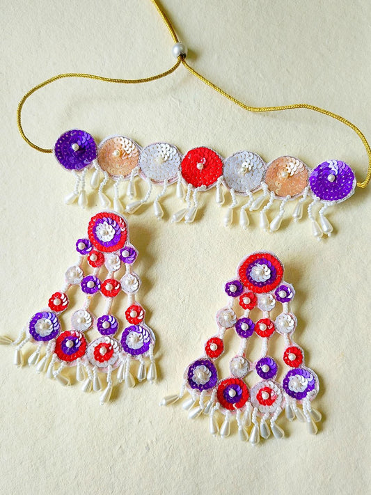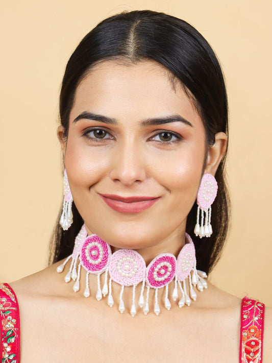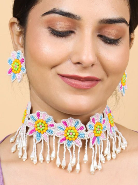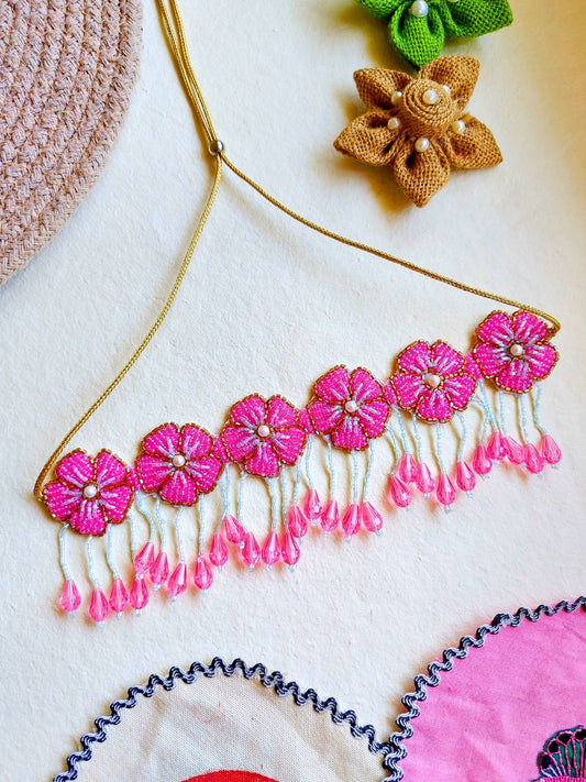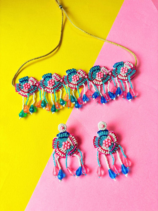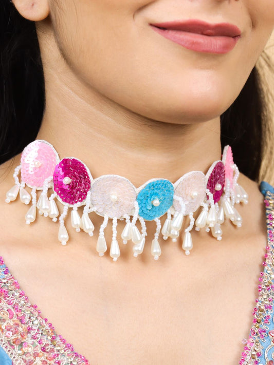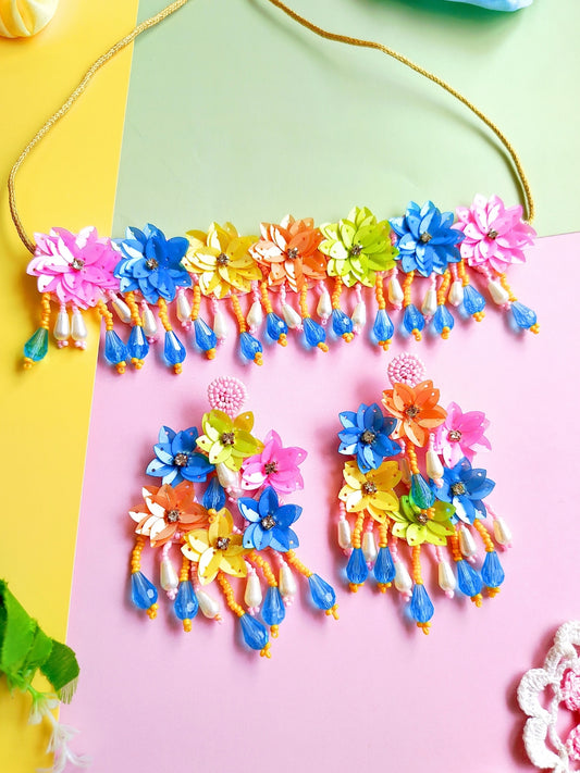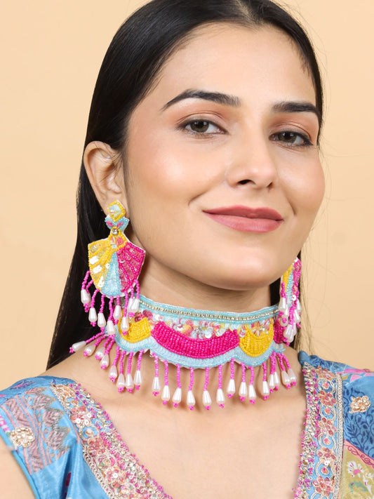 Rang Floral Bridal Choker Set (Pink and Blue)
