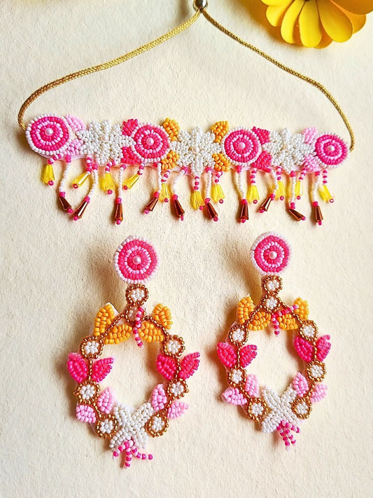 Zia Floral Bridal Choker Set (Pink Yellow)
