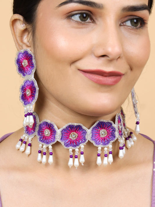 Bloom Floral Bridal Choker Set (Pink Purple)