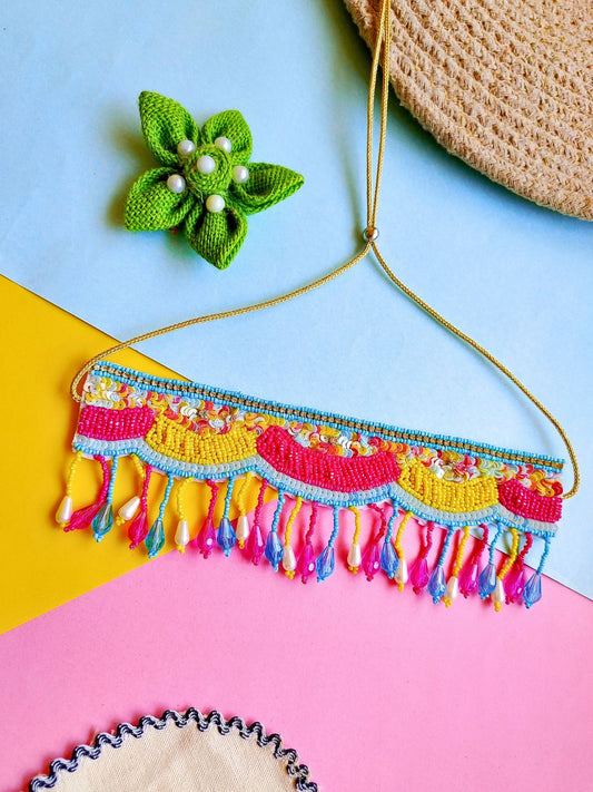 Femina Bridal Choker Maangtika Set (Pink and Yellow)