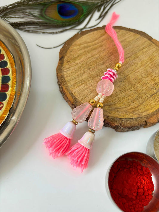Pink Tassel Lumba Rakhi with Roli Chawal