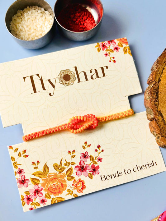 Orange Tassel Lumba Rakhi with Roli Chawal