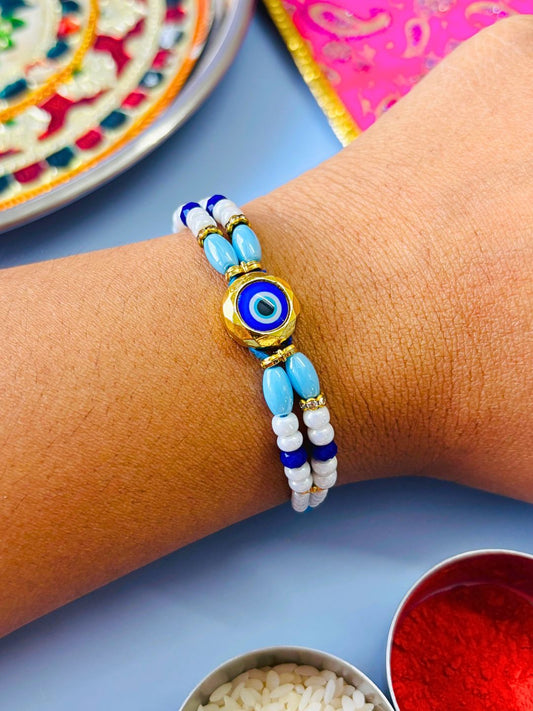 Evil Eye Enamelled Rakhi with Roli Chawal
