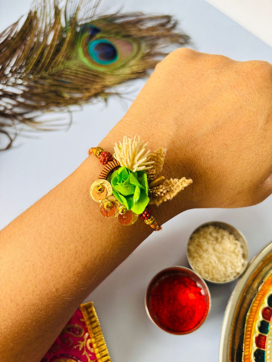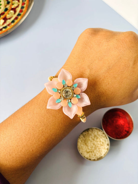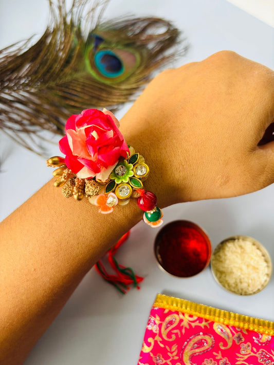 Embellished Floral Rakhi with Roli Chawal for Brother (Pack of 1)