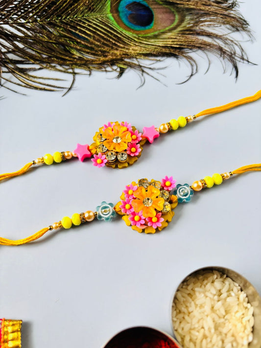 Cute Floral Kids Rakhi with Roli Chawal for Brother (Pack of 2)