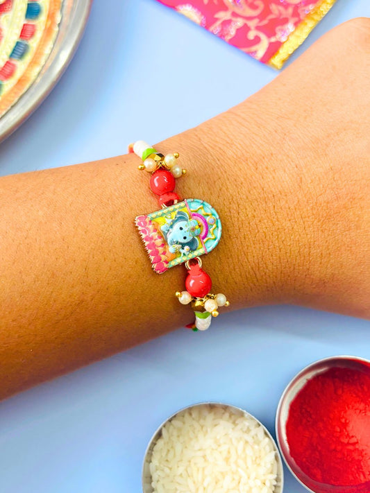 Cute Beaded Rakhi with Roli Chawal for Brother (Pack of 2)