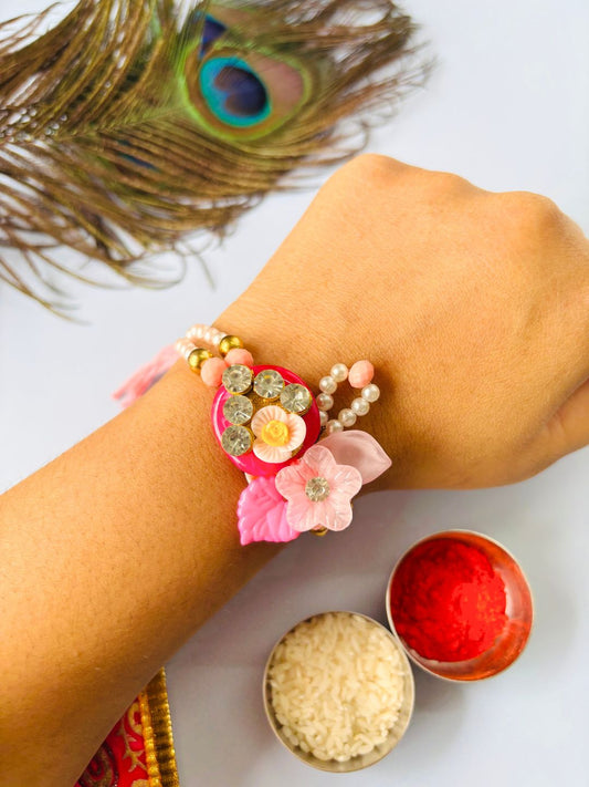 Designer Pink Embellished Rakhi with Roli Chawal for Brother (Pack of 2)