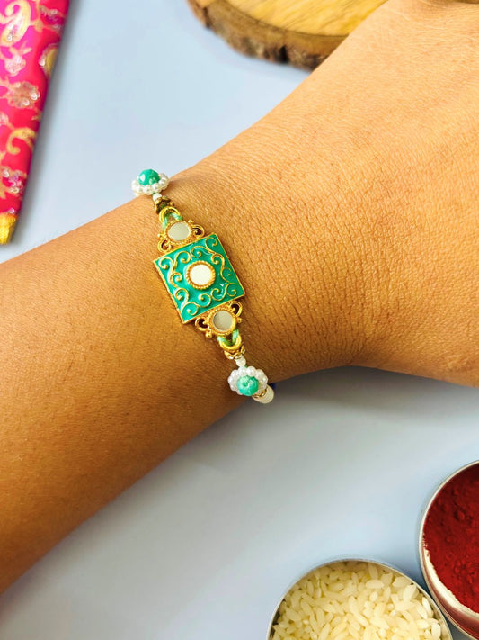 Traditional Meenakari Rakhi with Roli Chawal for Brother