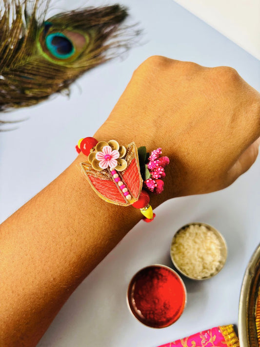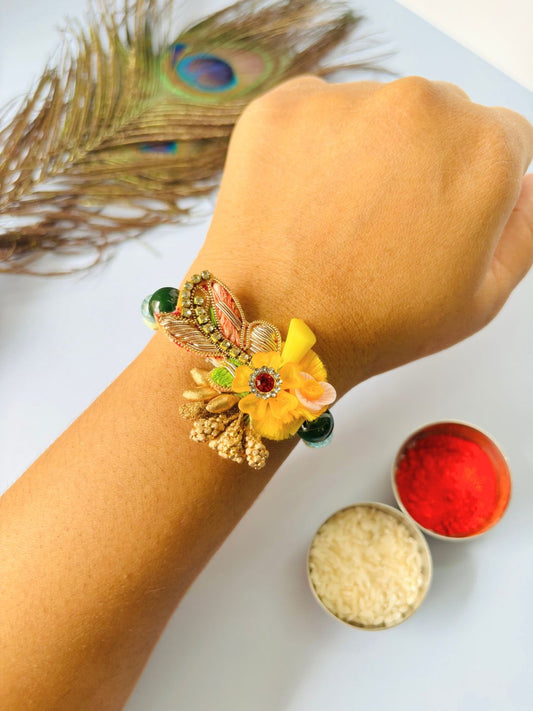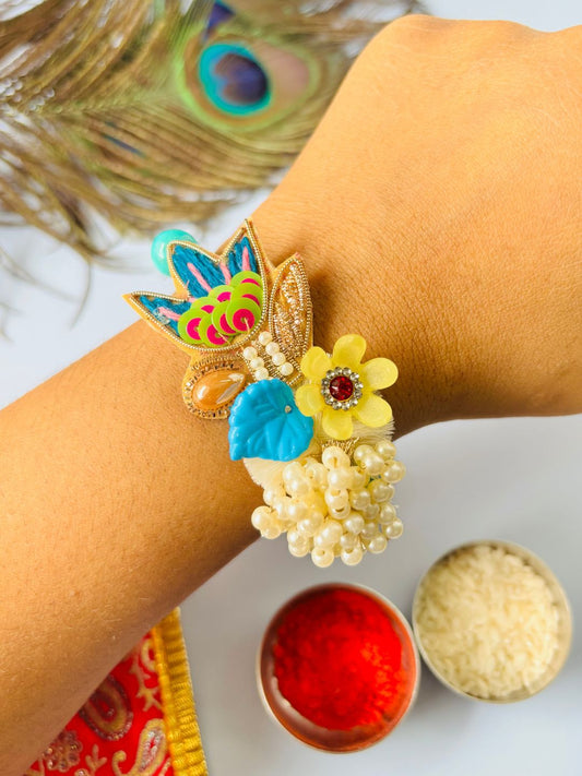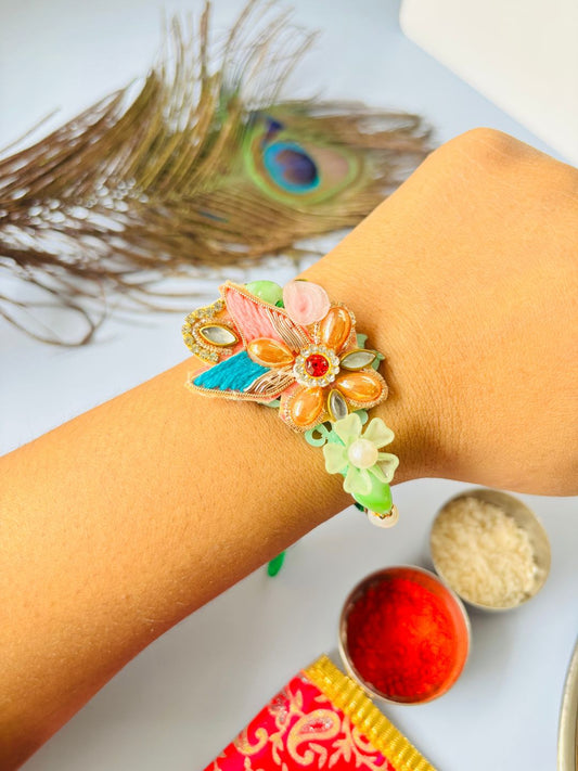 Designer Floral Embellished Rakhi with Roli Chawal for Brother (Pack of 2)