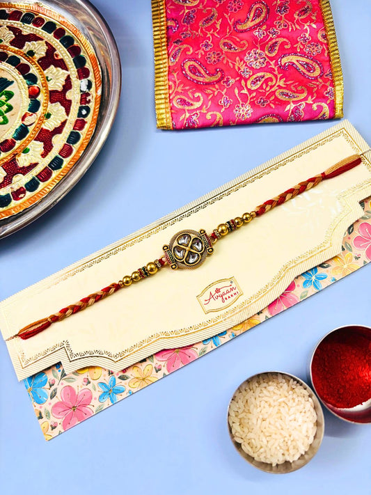 Traditional Kundan Rakhi with Roli Chawal for Brother - Floral Accent (Pack of 2)