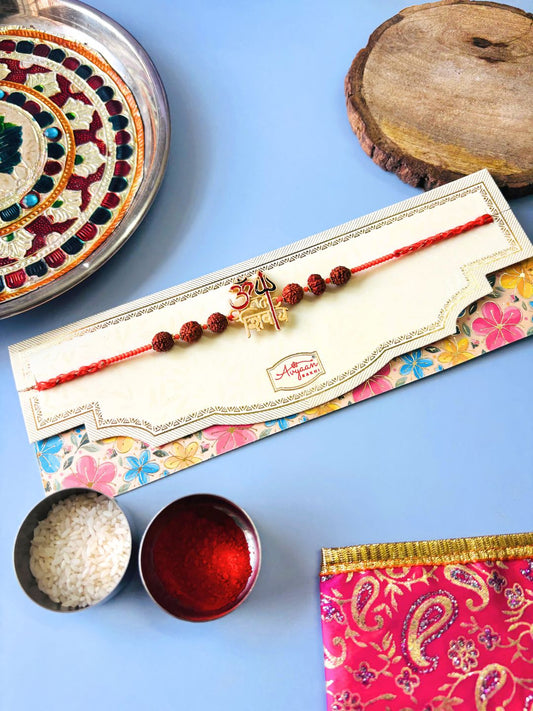 Om Namah Shivaay Rudraksh Traditional Rakhi with Roli Chawal for Brother