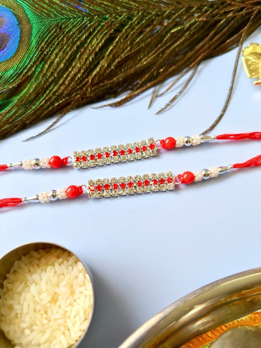 Traditional Meenakari Kundan Rakhi with Roli Chawal for Brother - Red (Pack of 2)