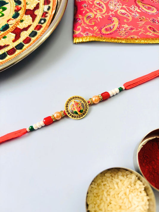 Traditional Ganeshji Meenakari Kundan Rakhi with Roli Chawal for Brother (Pack of 2)