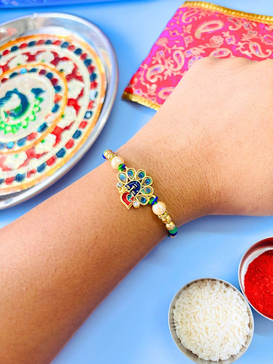 Traditional Meenakari Rakhi with Roli Chawal for Brother